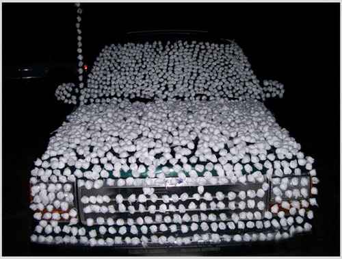 15.大量棉花球,沾水后貼在車上,過一夜之后就變這樣了!