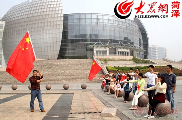 大眾網(wǎng)菏澤站員工在菏澤大劇院合影,為祖國點贊。