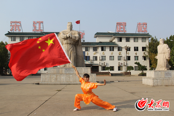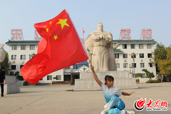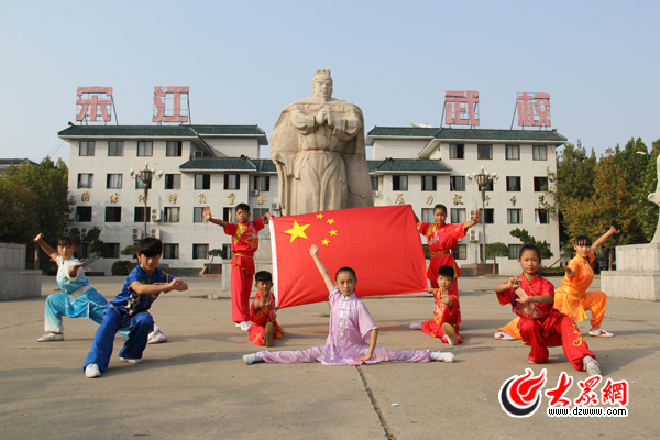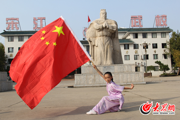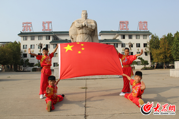 9月29日,菏澤市鄆城縣宋江武校學子與國旗合影,為中國點贊。