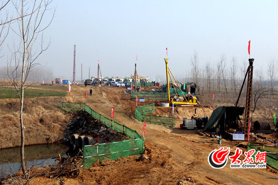 今天上午,大眾網(wǎng)記者跟隨“山東鐵路建設(shè)媒體行”采訪團(tuán)來(lái)到位于山東日照的青連鐵路六甲莊大橋建設(shè)工地,在這里,大眾網(wǎng)記者看到,場(chǎng)地整理、駐地建設(shè)等前期施工準(zhǔn)備工作已經(jīng)完成,工地上高壓旋噴樁機(jī)等大型設(shè)備正在緊張地作業(yè)。