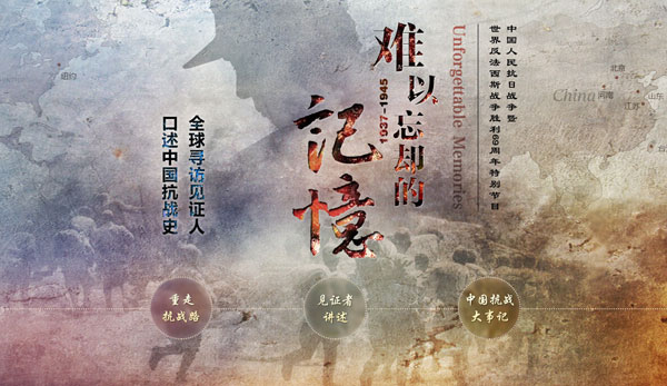在這場(chǎng)救亡圖存的偉大斗爭中,中華兒女為中華民族的獨(dú)立和自由拋頭顱、灑熱血,用一場(chǎng)場(chǎng)血戰(zhàn)將日寇驅(qū)逐出中國。為了銘記歷史,緬懷先烈,珍視和平,警示未來,大眾網(wǎng)推出獨(dú)家策劃“難以忘卻的記憶——全球?qū)ぴL見證人·口述中國抗戰(zhàn)史”。