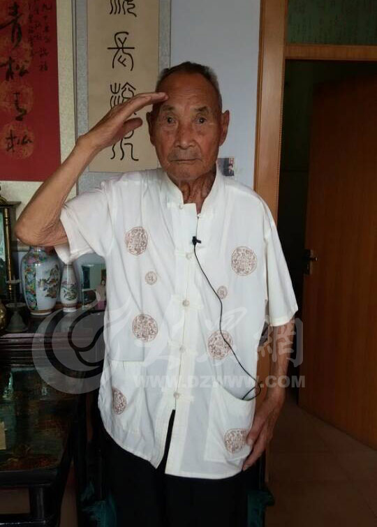 王清松老人雖然反應(yīng)已經(jīng)有些許遲鈍,但我們一提到臺兒莊戰(zhàn)役,特別是提到當(dāng)年與他同生共死的戰(zhàn)友們,他就會立刻精神抖擻地行一個軍禮。大眾網(wǎng)記者攝