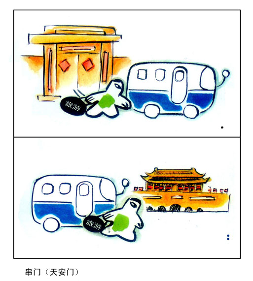 漫畫(huà)類(lèi)二等獎(jiǎng)《串門(mén)(天安門(mén))》 作者:郝增茂