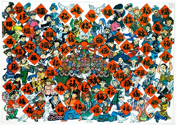 漫畫(huà)類(lèi)二等獎(jiǎng)《中國(guó)夢(mèng)·五十六個(gè)祝! 作者:林忠業(yè)