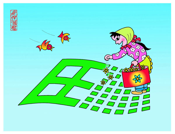 漫畫(huà)類(lèi)二等獎(jiǎng)《播種》 作者:苗杰
