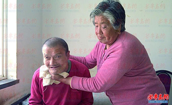 蘇桂云的丈夫在2001年去世,她就開始一個人照顧著大兒子。“都55年了,他從未叫我一聲"媽"!碧K桂云慈祥地看著辛克洪,不免有些心酸。而辛克洪卻什么都聽不懂,只是呵呵地笑!拔矣浀煤⒆有〉臅r候就有很多人勸我和孩子他爸,讓我把孩子送到精神病院去,但是我們都舍不得!碧K桂云說,自己的孩子還是自己照顧好,別人照顧他自己不放心。