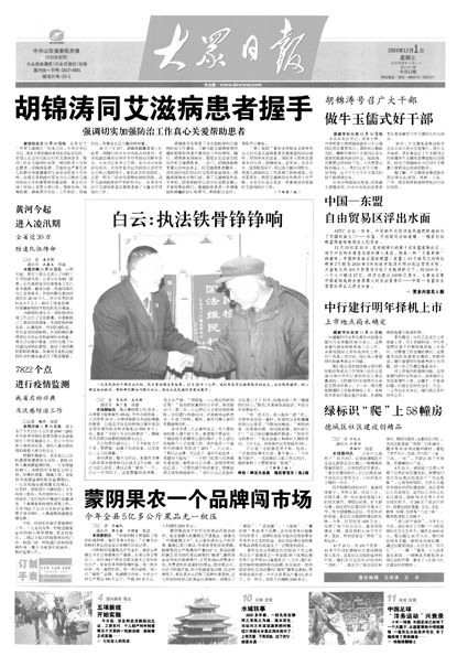 2004年本報(bào)頭版刊發(fā)白云事跡報(bào)道。