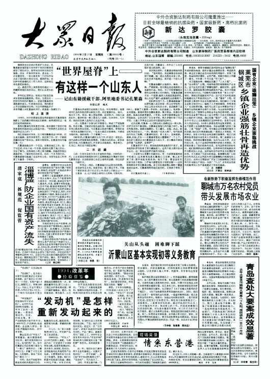 1994年本報(bào)頭版刊發(fā)孔繁森事跡。