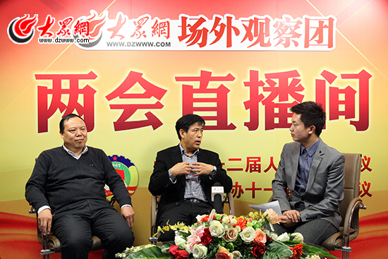山東金融資產(chǎn)交易中心副總裁尉青(左)和山東財經(jīng)大學區(qū)域經(jīng)濟研究院院長、金融學院常務副院長張志元(中)做客大眾網(wǎng),圍繞山東財稅改革和金融改革展開討論。楊春衛(wèi) 攝