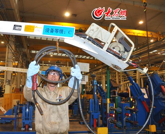 31日下午,采訪團(tuán)來到山東臨工,近距離接觸這些“巨無霸”挖掘機(jī)。在聯(lián)合車間、總裝一車間,整潔有序的車間環(huán)境,以及工人們一絲不茍的操作,還有國際先進(jìn)的生產(chǎn)流水線,給采訪團(tuán)留下了深刻的印象。
