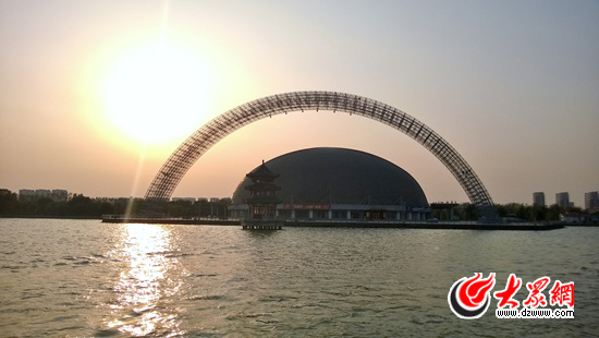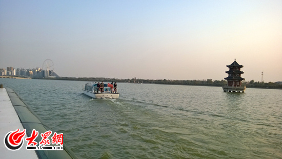 泛舟東昌湖上,寬闊的湖面、豐沛的水量展現(xiàn)著江北水城的獨(dú)特陽剛魅力。水域兩側(cè),近千年歷史的宋代古城和現(xiàn)代化的聊城新城被夕陽染上一層金色的光輝,美景交相輝映,引得采訪團(tuán)的記者們頻頻按下快門。