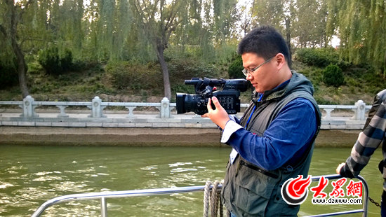 10月27日下午,聚焦“一圈一帶”第十屆中國(guó)網(wǎng)絡(luò)媒體山東行采訪團(tuán)記者泛舟東昌湖采訪。記者 馬俊驥 攝