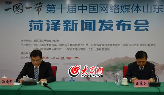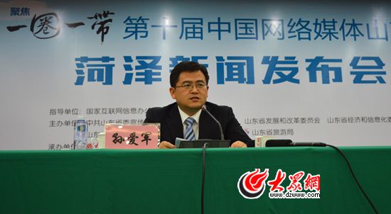 今天下午,“聚焦‘一圈一帶'——第十屆中國網(wǎng)絡(luò)媒體山東行”召開菏澤市新聞發(fā)布會(huì),菏澤市委副書記、市長孫愛軍就菏澤經(jīng)濟(jì)社會(huì)發(fā)展情況進(jìn)行主題發(fā)布,菏澤市委常委、宣傳部長王永江主持發(fā)布會(huì)。