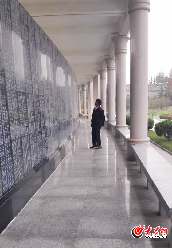 從紀念館出來已近黃昏,經(jīng)過一個廣場就來到長達162米的渤海革命老區(qū)烈士英名錄碑廊,四大塊黑色大理石碑上密密麻麻地鐫刻著55308名烈士的名字以及他們的籍貫、職務和犧牲地點。短短的一行,寥寥數(shù)語,就概括了英雄的一生,黑底白字的莊嚴如泣如訴,輕撫那一個個名字,用指尖感受歷史的溫度,他們大部分還是十八九歲、二十多歲的小伙子,正是人生風華正茂的時候,但他們卻毅然決然的拿起槍跟著共產(chǎn)黨走,為了建立、保衛(wèi)新中國,獻出了自己寶貴的生命,他們的一生是短暫的,但卻是生的偉大死的光榮。正在我們細細地瞻仰烈士英名的時候,發(fā)現(xiàn)長廊那頭有一位老大爺正湊在碑石前,佝僂著背脊,在一個一個名字地搜尋,我們走過去詢問,他用含混不清的方言說他在找他犧牲的哥哥,但是沒找到,我只聽出來烈士姓魯,我們一行人幫忙找了好一陣未果,因為行程的關系我們不得不離開時,老大爺還在執(zhí)著地搜尋,也許在我們看來那只是刻在石碑上的短短一行寥寥數(shù)語,但對于烈士的親人來說那卻是對心底思念的傷痛最深的慰籍。
