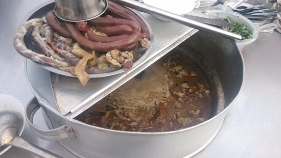 羊腸子也叫清血腸,實際上是由鮮羊腸皮灌入羊血、淀粉、香料,然后在加了多種佐料的老湯里煮熟,再配上湯料盛到碗里食用。羊腸子有肥有瘦,所謂肥瘦就是指腸衣上脂肪的多寡,其中肥腸是老餮們的最愛,去得晚了,經(jīng)常會點不到,但如果是第一次品嘗羊腸子,還是推薦先吃瘦腸適應一下。