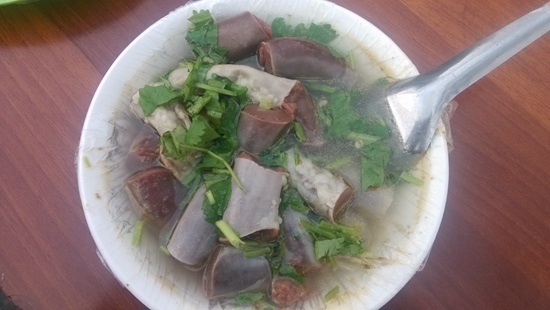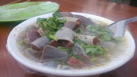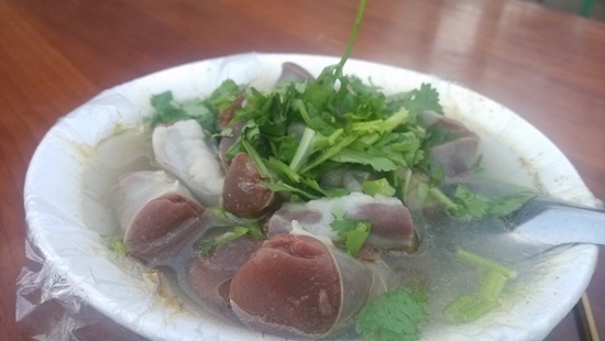 一碗好吃的羊腸子價格便宜,但風味獨特,能從中品嘗出多種口感,腸衣咬嚼時爽口彈牙,有咬頭;腸血香嫩細滑,不沾牙;它的湯更有一種特殊的鮮香,不僅全無羊肉那種腥膻的氣味,喝上一口回味無窮,再配上芫荽,撒上一層白胡椒面,那滋味瞬間征服唇齒,叫人欲罷不能。有人曾這樣描述在德州喝羊腸子的感覺:“第一次是閉著眼吃——怕膻;第二次瞇著眼吃——品味;第三次是瞪著眼吃——解饞。”
