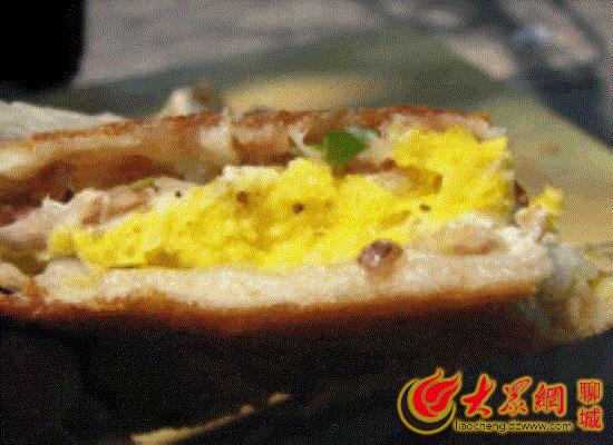 大眾網(wǎng)聊城5月5日訊 在聊城,很多人的一天是從吃一口呱嗒開始的。來到早餐攤邊,買一個熱騰騰的呱嗒,用油紙包了,攔腰切開,露出雪白的蛋清、金燦燦的蛋黃,夾雜著香飄四溢的肉粒,深吸一口氣,聞聞從指縫間飄散出來的蔥花香,整個人瞬間精神“倍兒爽”。