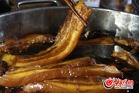 把子肉在濟南有上百年的歷史,幾乎老濟南人都會制作,但要做得好吃,還是那些有傳統(tǒng)配方燉制的把子肉。
