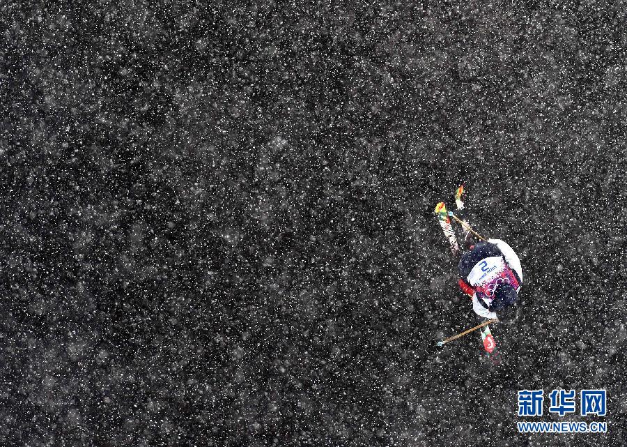 2月18日,美國選手布隆克在比賽中。當日,2014索契冬奧會自由式滑雪男子U型場地技巧比賽舉行。