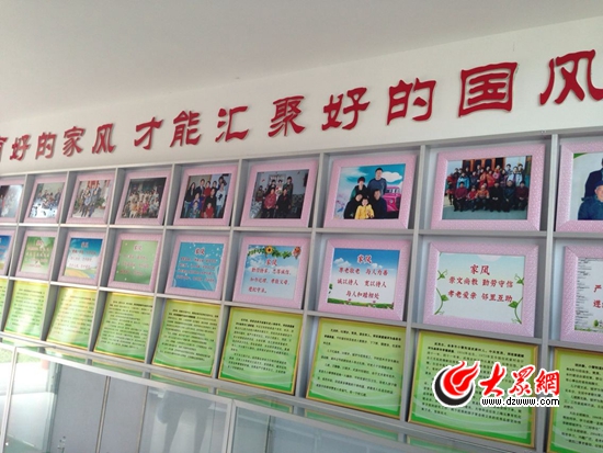 在武家村文化大院里,有一間辦公室專門展示家風,家風榜的正上方寫著“只有好的家風 才能匯聚好的國風”。大眾網(wǎng)記者朱德泉 攝