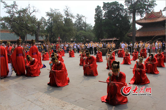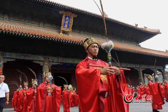 9月10日,“網(wǎng)絡(luò)名人孔子故里行”一行在孔廟觀看《祭孔大典》。