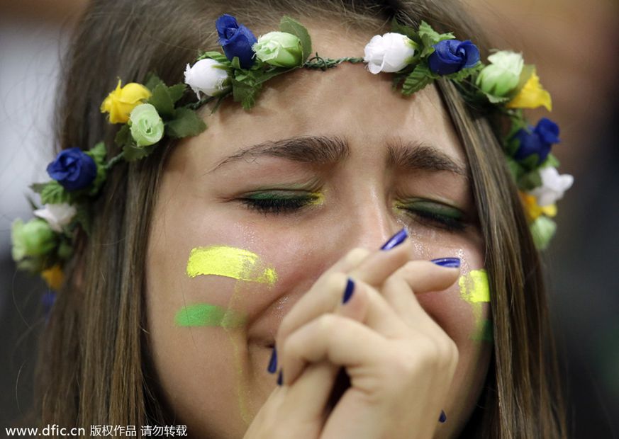 當(dāng)?shù)貢r(shí)間2014年7月12日,巴西利亞國家體育場,2014巴西世界杯三、四名決賽,巴西0-3荷蘭。巴西美女球迷賽后哭泣。