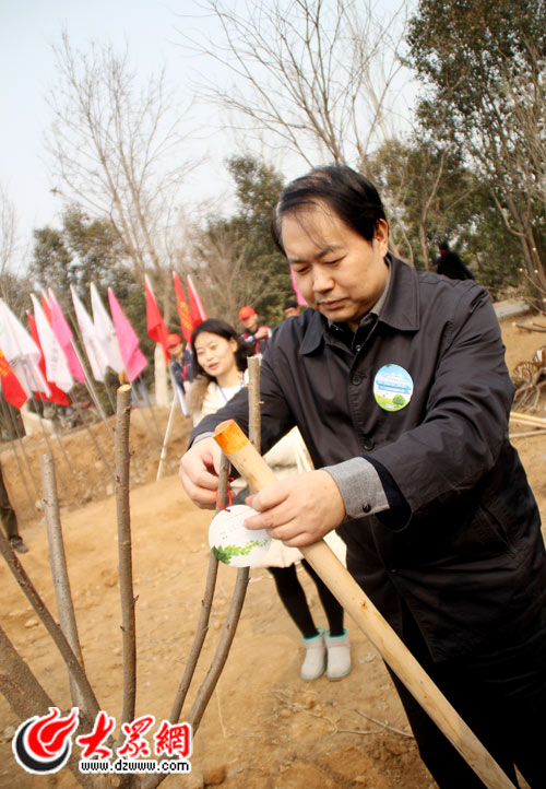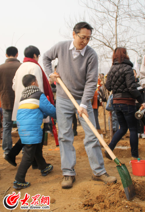 大眾報(bào)業(yè)集團(tuán)黨委常委、副總編輯楊曉洲正在植樹(shù)。(記者 宋立鵬 攝)