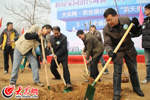 “植綠家園治污減霾 共享齊魯藍(lán)天白云”——大眾網(wǎng)·農(nóng)業(yè)銀行3·12全省百萬(wàn)網(wǎng)友踐行“藍(lán)天責(zé)任”植樹(shù)在行動(dòng)(記者 宋立鵬 攝)