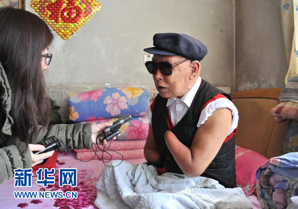 朱彥夫在接受媒體采訪 新華社記者徐速繪3月18日攝