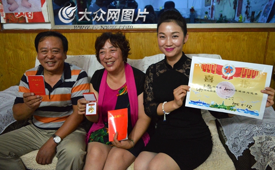 王超的父母和姐姐向大眾網(wǎng)記者展示王超獲得的榮譽(yù)。(記者 王宗陽 攝)