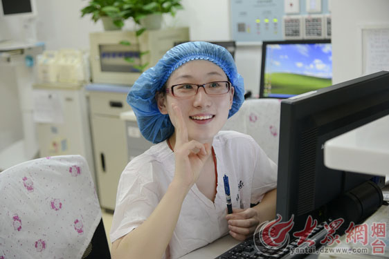 肖慧媛是煙臺毓璜頂醫(yī)院產(chǎn)房中的一名“90”后助產(chǎn)士,今年春節(jié)本該她回家過年,但是因?yàn)榻煌ㄔ,沒能回家。在確定不能回家過年之后,肖慧媛毅然放棄休息時間,堅持回到工作崗位上,與同事一起在產(chǎn)房里過新年!敖衲晔俏业谝淮卧诖汗(jié)期間上班,雖然不能回家和家人團(tuán)聚,但是和科里的同事呆在一起,也讓我感到很高興。因?yàn),我畢業(yè)之后就來煙臺毓璜頂醫(yī)院產(chǎn)房工作了,現(xiàn)在已經(jīng)快2年了,在這期間,所有的同事給我的感覺都好像是家人一樣,我在這里可以感到像家一樣的溫暖!毙せ坻抡f。
