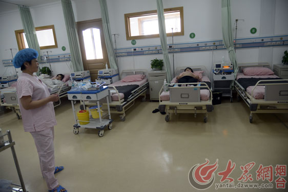 在煙臺毓璜頂醫(yī)院產(chǎn)房待產(chǎn)室中,護(hù)士們?yōu)槊课辉袐D檢測胎心,并注意觀察孕婦情況,保障每位孕婦可以在生產(chǎn)前達(dá)到最佳狀態(tài)。