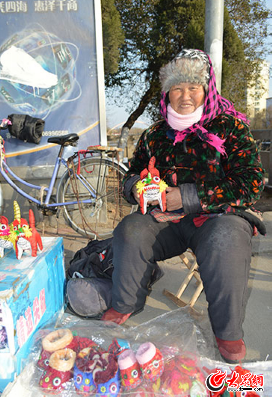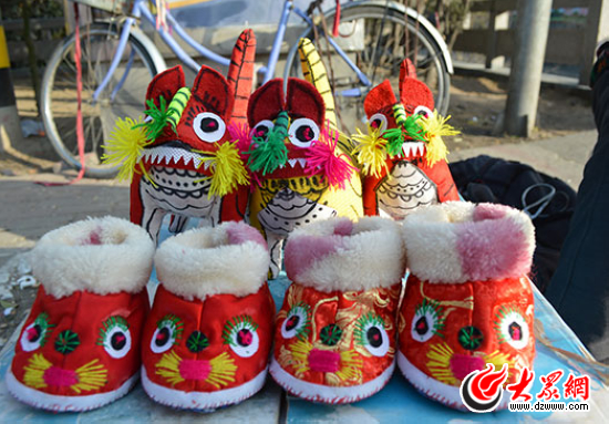 老人親手縫制的布老虎和虎頭鞋。現(xiàn)在會(huì)這種手藝活兒的人越來(lái)越少,我們也只能在過(guò)年這幾天看到她在中山北路“推銷(xiāo)”作品。