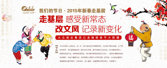編者按:今年是大眾網(wǎng)連續(xù)第6年開(kāi)展新春走基層活動(dòng),2015年春節(jié)期間,大眾網(wǎng)記者將拿起手中的筆,端起相機(jī)、攝像機(jī),深入城市、鄉(xiāng)村、廠礦企業(yè)、車(chē)站碼頭等基層崗位,采訪工人、農(nóng)民、普通市民,傾聽(tīng)百姓心聲,了解社情民意,記錄祖國(guó)的變化,書(shū)寫(xiě)普通小人物的感人故事,體驗(yàn)基層群眾所需所求,全面展示基層群眾的工作和生活,展現(xiàn)出社會(huì)和諧、經(jīng)濟(jì)發(fā)展、文化繁榮的生動(dòng)景象,反映基層干部群眾奮發(fā)向上的精神風(fēng)貌和節(jié)日狀態(tài),營(yíng)造出歡樂(lè)祥和的節(jié)日氛圍。