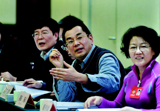 1月27日,陳東委員(右二)在小組討論中,就對齊魯文化資源進(jìn)行去粗取精、去偽存真的挖掘和闡發(fā),著力建設(shè)社會主義核心價值體系的問題與同組委員展開討論。