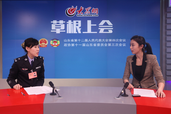 大眾網(wǎng)濟(jì)南1月26日訊(記者 姜洋)26日,大眾網(wǎng)山東省兩會(huì)特別節(jié)目“草根上會(huì)”迎來(lái)了山東高速交警總隊(duì)的畢華軍。在工作中,她是市民眼中英姿颯爽的女交警;在網(wǎng)絡(luò)上,她是網(wǎng)友眼里古靈精怪的“無(wú)敵餅干姐”;而今年山東兩會(huì),她又有了一個(gè)新身份——“民生連線(xiàn)”推薦旁聽(tīng)大會(huì)的15名群眾代表之一。在大眾網(wǎng)演播室里,畢華軍一改往日的“無(wú)敵”,而是變得有點(diǎn)拘謹(jǐn),但說(shuō)起如何解決高速公路交通擁堵和處置事故等方面的問(wèn)題,她又立即侃侃而談。
