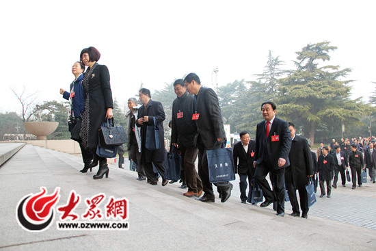 今天上午8:30左右,參加山東省政協(xié)十一屆三次會議開幕會議的政協(xié)委員開始入場