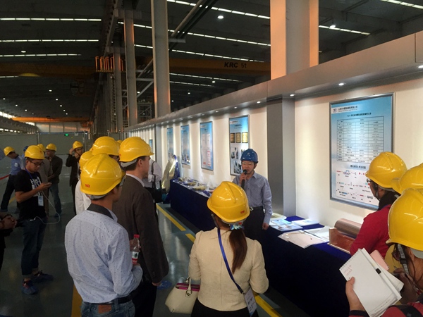 在山東天和壓延銅箔有限公司生產(chǎn)車(chē)間,公司副總經(jīng)理韓新俊向采訪團(tuán)介紹產(chǎn)品特性。