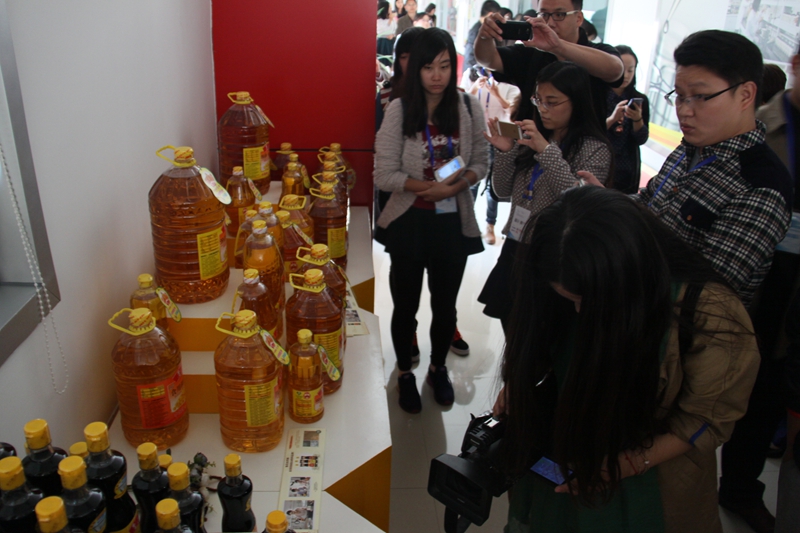 采訪團(tuán)記者參觀魯花的產(chǎn)品。(盛堃 攝)
