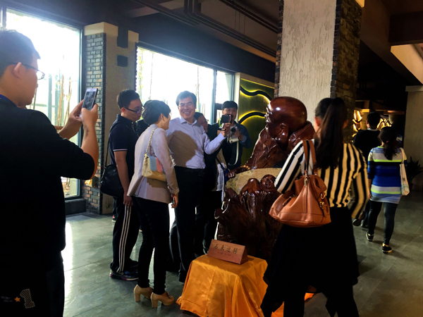 從服務(wù)中心的家具展銷館到木文化長(zhǎng)廊,采訪團(tuán)成員被一件件堪比藝術(shù)品的木雕、家具、珍稀古木等展品吸引,其中,山東泰森日利木業(yè)有限公司展出的紅木家具更是引得記者們贊嘆連連。令人難以想象的是,就在幾年前,泰森日利還僅僅是一家加工膠合板的老木板廠;如今,公司已經(jīng)由單純的板材生產(chǎn)加工型企業(yè)向高端木制品生產(chǎn)領(lǐng)域拓展,還能為消費(fèi)者提供數(shù)碼定制家具的智能服務(wù),不僅延伸了產(chǎn)業(yè)鏈條,更通過轉(zhuǎn)型升級(jí)成功開拓了更新更廣闊的市場(chǎng)。