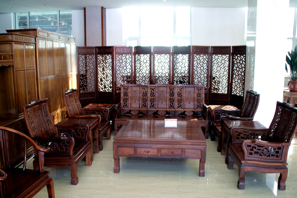 走進(jìn)家具展銷館,泰森日立展出的紅木家具設(shè)計(jì)優(yōu)雅、做工精美,吸引了眾人的目光。