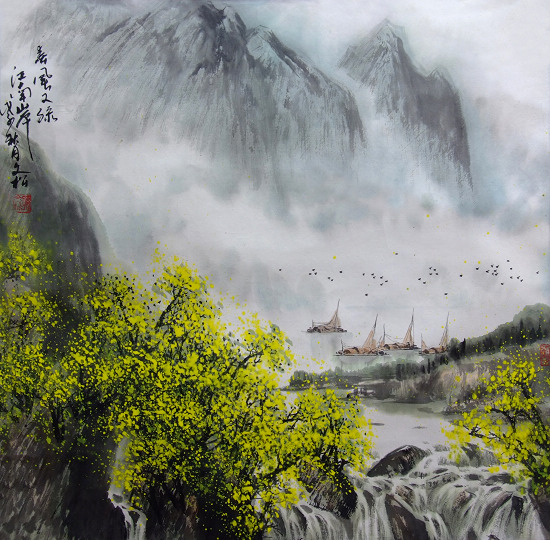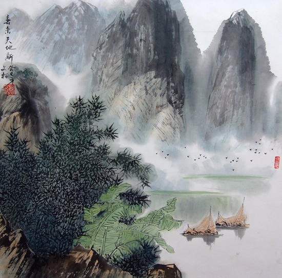 第一次看到孫文松先生的國(guó)畫(huà)山水時(shí),我一下子就被他畫(huà)的那幾幅春意盎然的白楊打動(dòng)了。后來(lái)又了解了一些他的經(jīng)歷,覺(jué)得用謝靈運(yùn)的那句“春晚綠野秀,巖高白云屯”形容他和他的作品,真是再合適不過(guò)了。