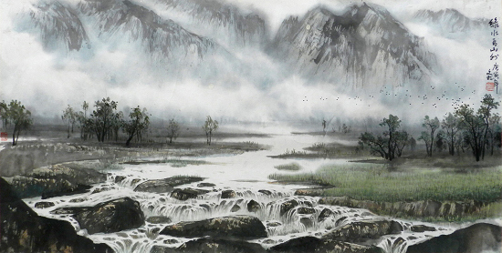 從上世紀(jì)80年代后,有著扎實(shí)西畫(huà)功底的孫文松先生,開(kāi)始專攻中國(guó)山水畫(huà)的研習(xí)。編輯工作對(duì)他來(lái)說(shuō)早已駕輕就熟,工作之余,他開(kāi)始繼續(xù)向恩師于希寧、張鶴云等人學(xué)習(xí),還大量臨摹宋元以來(lái)的國(guó)畫(huà)名作,并且深入山間溪邊,寫(xiě)生自然。他有意識(shí)地把西畫(huà)的功底運(yùn)用到國(guó)畫(huà)山水畫(huà)創(chuàng)作中,力圖找到自己的繪畫(huà)風(fēng)格。對(duì)于孫文松的探索,于希寧曾經(jīng)評(píng)價(jià)道:“無(wú)論題材的選擇,意蘊(yùn)的表達(dá),構(gòu)圖的經(jīng)營(yíng),筆觸的凝聚方式,都具有強(qiáng)烈的個(gè)人色彩。他把西畫(huà)技法和中國(guó)傳統(tǒng)有機(jī)地糅合、嫁接,創(chuàng)作出一幅幅清新、高雅,有生活情趣又與傳統(tǒng)模式拉開(kāi)距離的屬于自己語(yǔ)言的作品來(lái)。”