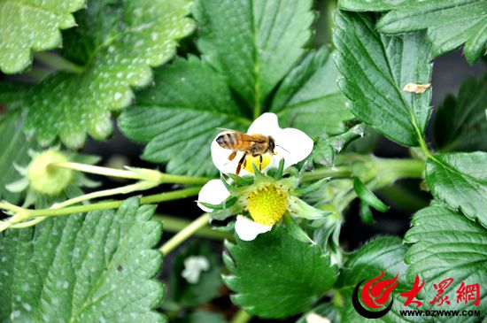 草莓地里花開正好,引來(lái)蜜蜂勞作忙。