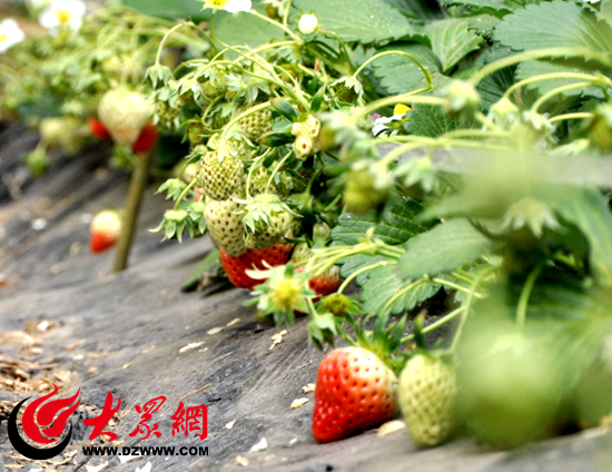 草莓大棚里,一派春意盎然,綠葉間開滿白色的小花,還有不少蜜蜂在花間忙個(gè)不停,紅色的果實(shí)點(diǎn)綴其間分外顯眼。游客蘇女士說(shuō)得好:“豈不是正應(yīng)了過(guò)年‘繁榮紅火’的景兒,想不紅火都難呢!”