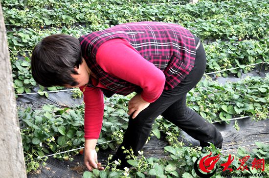 李大姐是四門口村村民,今年蓋了六七畝地的草莓大棚,生意最好的時(shí)候一天能賣上幾千塊:“這些日子天氣好、陽(yáng)光足,草莓長(zhǎng)勢(shì)也好。從初二開始來(lái)摘草莓的就多了,兩三天下來(lái)棚里已經(jīng)挑不出成熟的果子了,草莓長(zhǎng)得不夠快呀!”李大姐正盤算著明年要多蓋上幾個(gè)大棚。