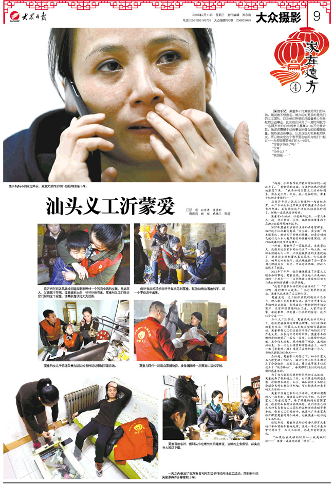 “媽媽,今年春節(jié)我不能回家和你們一起過年了。”莫童說到這里,大滴的淚珠撲簌簌地滾落下來,“我參加的沂蒙義工活動特別多,實在走不開。年后,我一定抽時間,帶著子鈺回去看你們……”