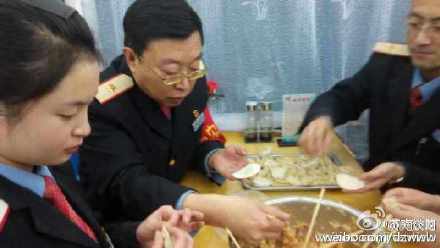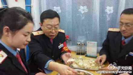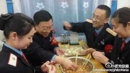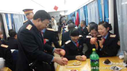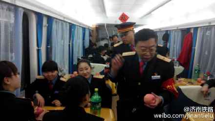 @大眾網(wǎng):2月18日20:05,李建國老師到達(dá)餐車,與備勤的乘務(wù)員們一起聚餐迎新春。今年即將退休的他最后一次為年輕乘務(wù)員們派發(fā)蘋果,祝愿她們年年歲歲,平平安安!