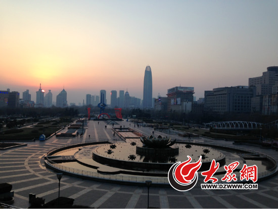 濟(jì)南的市中心此時(shí)也顯的冷冷清清,夕陽(yáng)西下,泉標(biāo)、噴泉、廣場(chǎng)構(gòu)成了一副最美畫卷(大眾網(wǎng)記者韋輝 攝)
