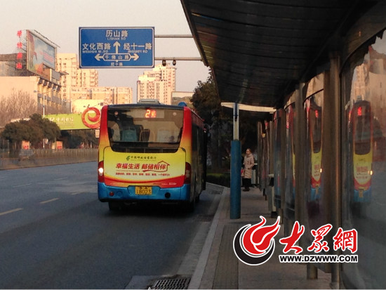 平日公交接龍進(jìn)站,乘客擁擠不堪的站臺(tái)此時(shí)只有三位乘客在等車(大眾網(wǎng)記者韋輝 攝)